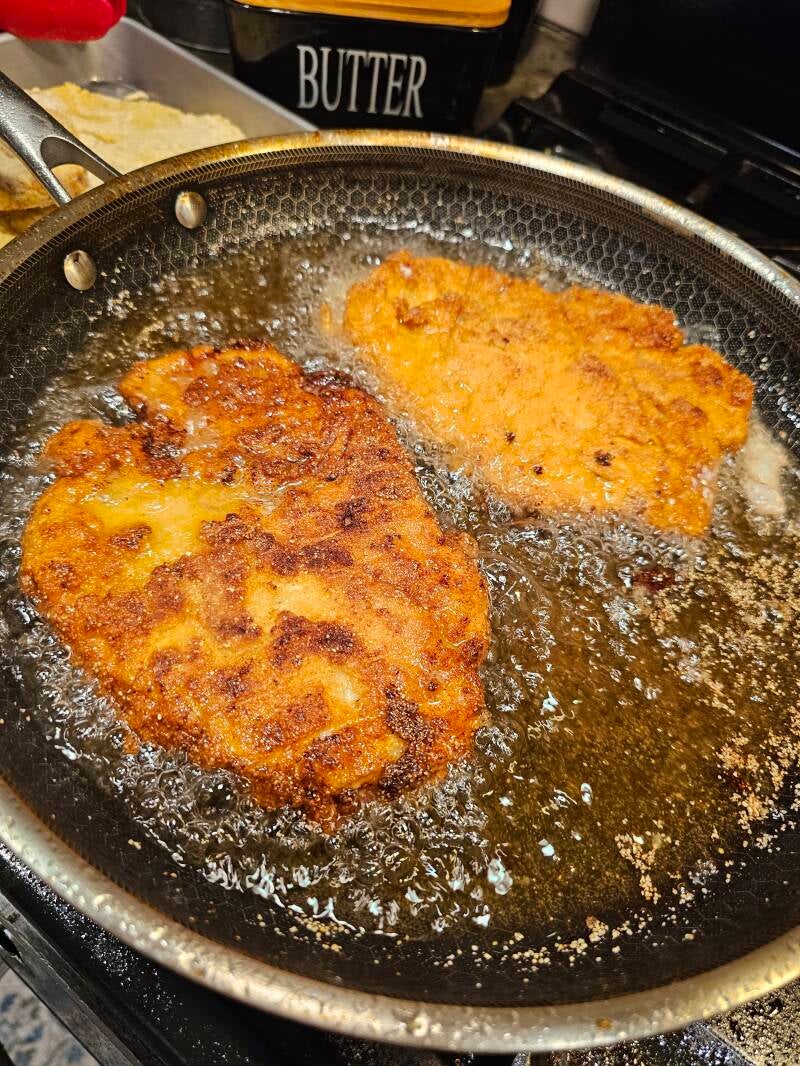 10. Working in batches, fry the pork chops for about 3 minutes per side, or until golden brown.